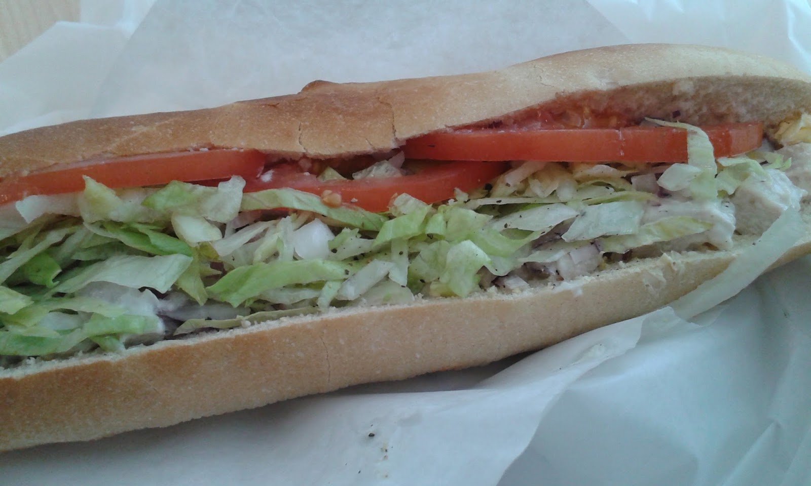 Can you notice it when you see the picture? Can you? No you cannot, it is very well hidden under the salad and the tomatoes and the red onions and the rest. But it was there again, at last. And by "it" I truly mean "them". The green olives. In the sandwich shop where I buy my Friday's sandwich to start the weekend on the right foot, they hadn't have green olives for ages. And this is what makes the difference, what makes this rather banal chicken mayo sandwich so very tasty.